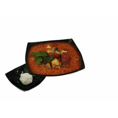 Окунь идзуми тай, помидоры черри, шампиньоны, лук порей, паста "Том ям", сливки, рис. Вес 330 гр.