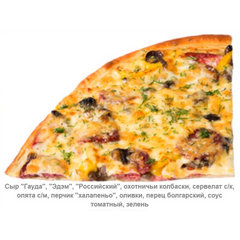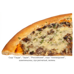 Сыр "Гауда", "Эдэм", "Российский", соус "голландский", шампиньоны, лук репчатый, зелень. Вес 820 гр.