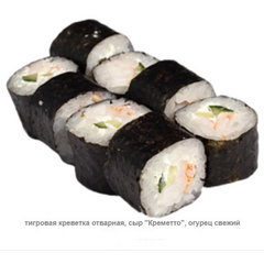 Тигровая креветка отварная, сыр "Креметто", огурец свежий. Вес 135 гр.
