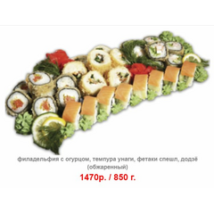 филадельфия с огурцом, темпура унаги, фетаки спешл, додзё (обжаренный)
