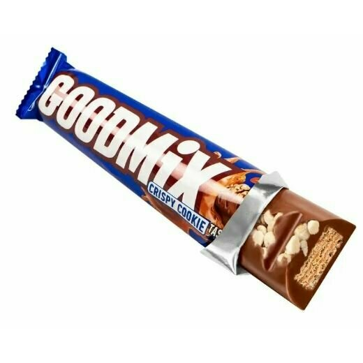 Шоколадный батончик GOODMIX со вкусом печенья и с хрустящей вафлей. Конфета GOODMIX CRISPY COOKIE taste с печеньем и с хрустящей вафлей. GOODMIX СRISPY COOKIE taste - это оригинальный микс нежного молочного шоколада и хрустящей вафли, декорированных кусочками ароматного печенья. Батончик GOODMIX - отличный вариант для быстрого утоления голода. Насладитесь вкусным батончиком GOODMIX от известного производителя кондитерских изделий! Без искусственных красителей, ароматизаторов и консервантов. Компания Нестле является одним из крупнейших производителей в таких кондитерских категориях, как шоколадные плитки, батончики, конфеты в коробках и жевательный мармелад. Внеся значительный вклад в историю развития шоколада, мы продолжаем радовать наших потребителей, предлагая широкий ассортимент любимых вкусов.
