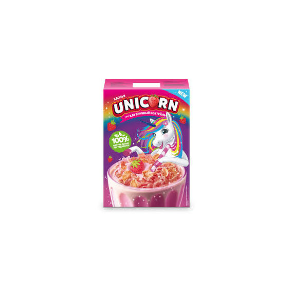 Любятово Хлопья кукурузные UNICORN Клубничный коктейль 220г 1/7