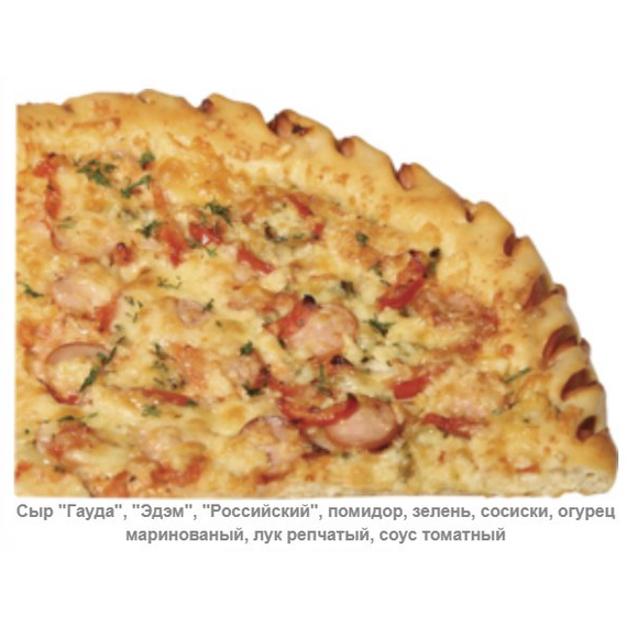 Сыр "Гауда", "Эдэм", "Российский", помидор, зелень, сосиски, огурец маринованый, лук репчатый, соус томатный. Вес 1000 гр.