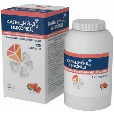 КАЛЬЦИЙ Д3 НИКОМЕД таб N120 Клубника/арбуз