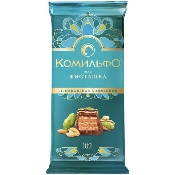 Комильфо 102г молоч. и бел. шок. со вкусом фисташки 1/13