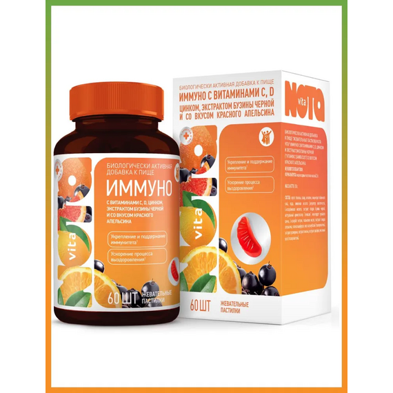 КОМПЛЕКС ИММУНО Nota Vita жевательные пастилки с вит С/D/Zn/экстр бузины апельсин №60