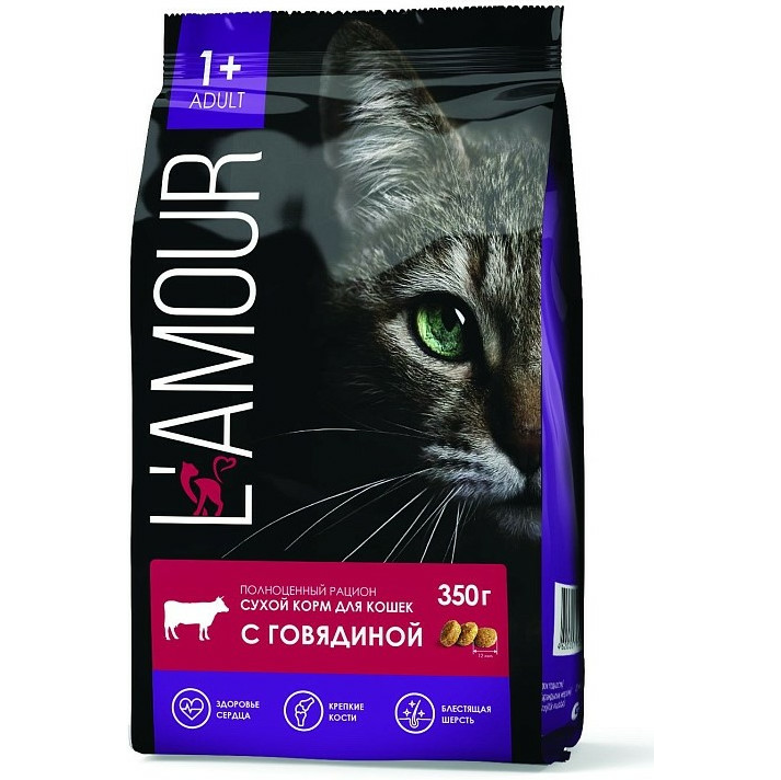 Корм для кошек с говядиной СУХОЙ ТМ "L`AMOUR" 350 гр пакет/12