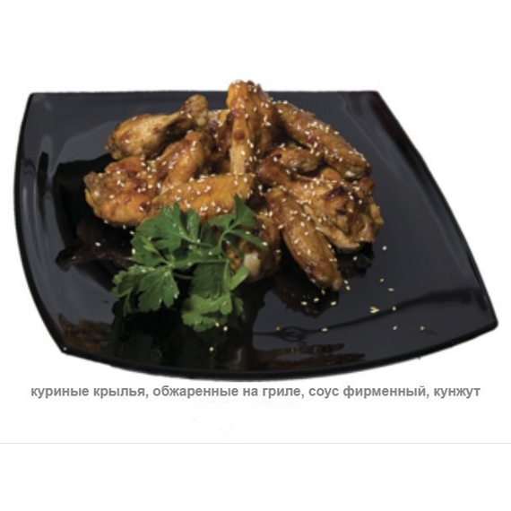 Куриные крылья, обжаренные на гриле, соус фирменный, кунжут. Вес 390 гр.