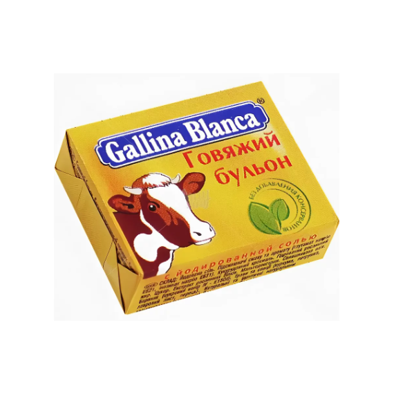 Йодированная соль, мясо говядины, подсолнечное масло, сахар, чеснок, экстракт перца, кукурузный крахмал, гидрированный растительный жир, мальтодекстрин, идентичный натуральному и натуральный ароматизаторы (говядина на косточке), краситель натуральный (сахарный колер IV E150d), регулятор кислотности (лимонная кислота Е330), усилители вкуса и аромата (глутамат натрия Е621, инозинат натрия Е631, гуанилат натрия Е627)