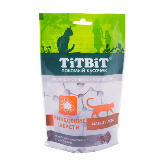 Лак-во ТитБит Хрустящие подушечки для кошек с говядиной для выведения
