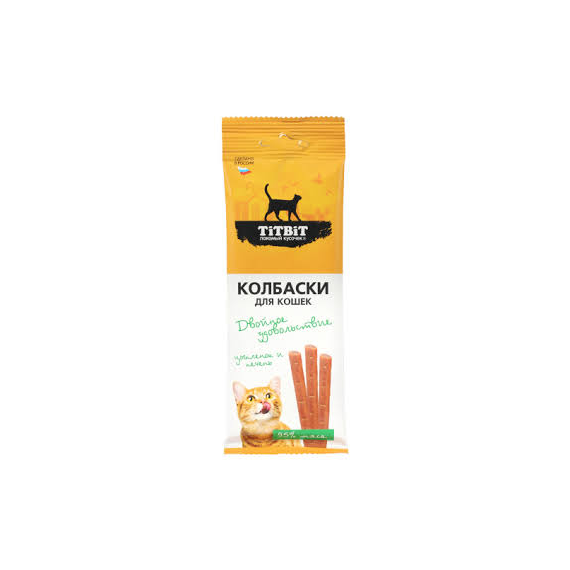 Лак-во ТитБит Колбаски для кошек Двойное удовольствие с цыпленком и печенью 45г