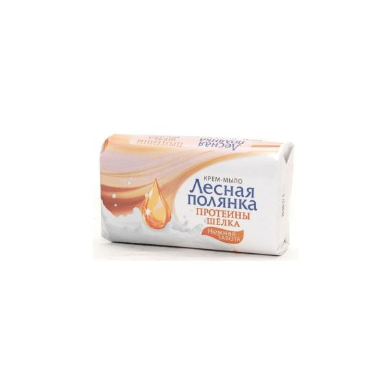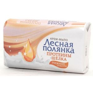 Лесная полянка Крем-мыло Протеины шелка, 90г. Мыло туалетное "Лесная Полянка" используется в гигиенических целях, а также для стирки или в качестве моющего средства. Входящая в состав уникальная формула бережно взаимодействует с кожей и при этом не травмирует её. Питает кожу, помогая сохранить её гладкой и упругой. Имеет приятный аромат.