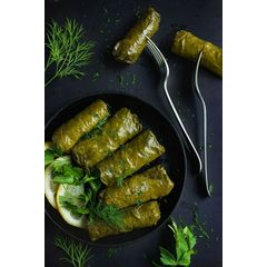 фарш (говядина, говядина+ свинина) рис, лук репчатый, зелень, перец черный, красный, виноградные листья