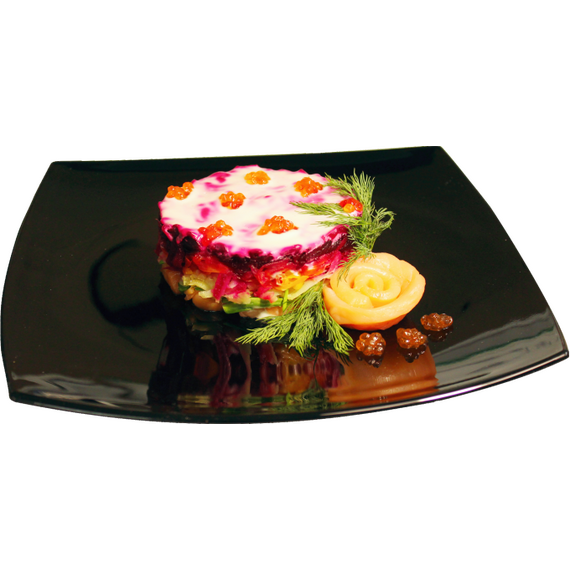 Состав: лосось х/к, картофель, морковь, свекла, лук зеленый, икра красная, майонез