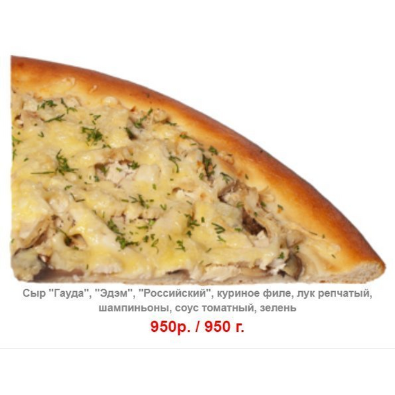 Сыр "Гауда", "Эдэм", "Российский", куриное филе, лук репчатый, шампиньоны,сливки, соус томатный, зелень