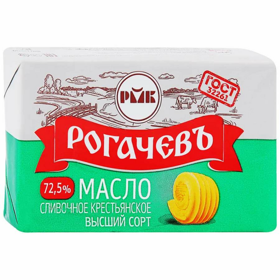 Масло сливочное Крестьянское 72,5% по 160г 1/10 Рогачев