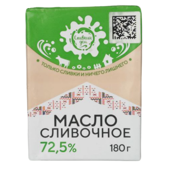 Масло сливочное 72,5% 180г 1/10 Сливкин Дом