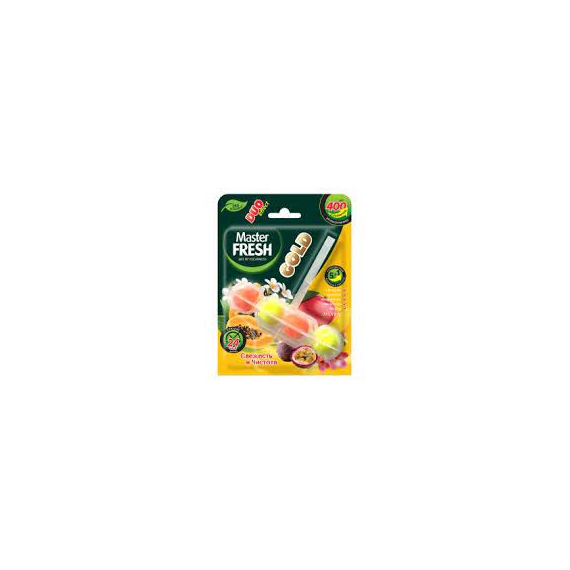 Master FRESH подвесной блок для унитаза DUO EFFECT 400 смываний 5в1 формула GOLD ТРОПИК, 1шт