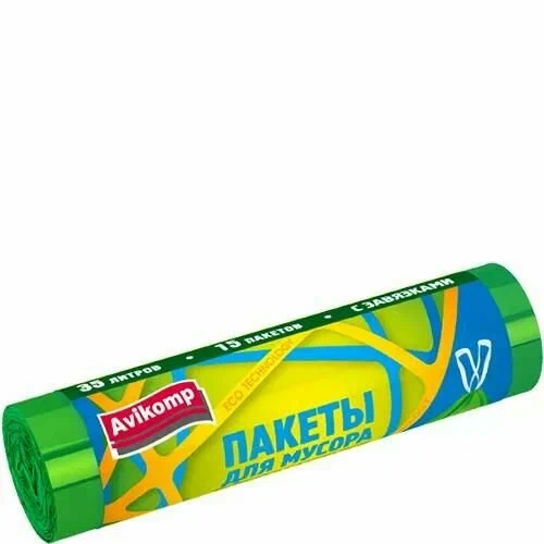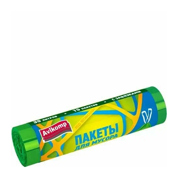 Мешки для мусора АВИКОМП 35л 15шт Биоразлагаемый с завязками зеленый