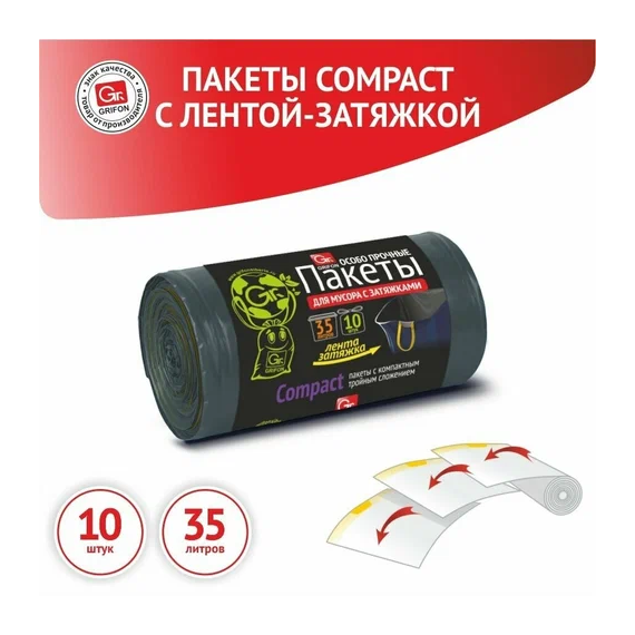 Мешки для мусора GRIFON 35л 10шт черные рулон