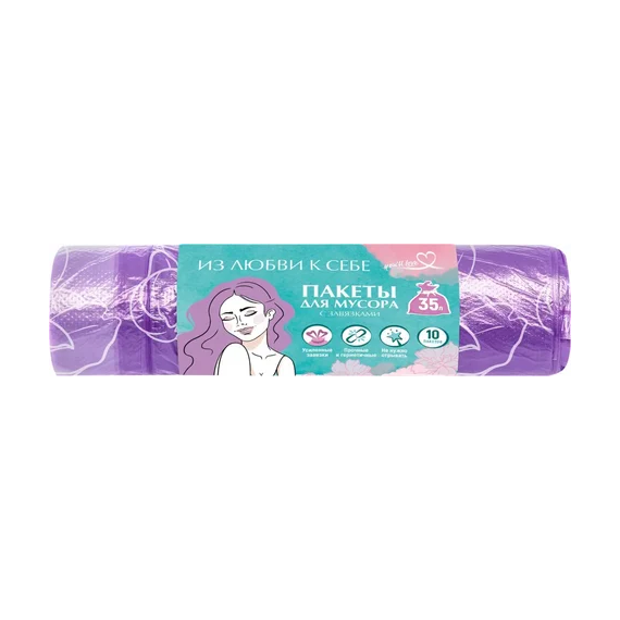 Мешки для мусора Из Любви к себе Пионы 35л 10шт с завязками