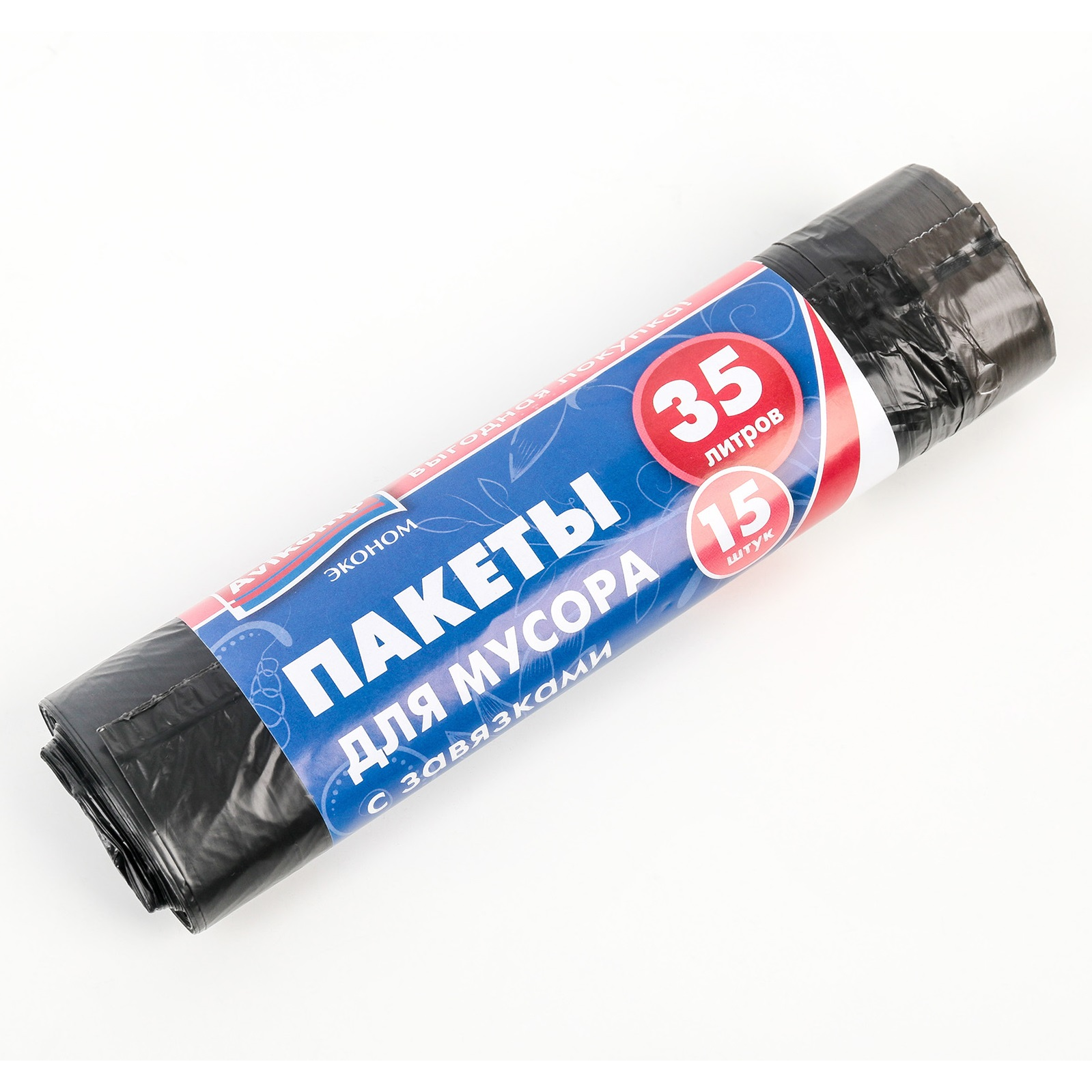 Мешки для мусора с завязками " Avikomp Эконом" 35л, толщина 15 мкм, рулон 15шт, черные 2624857
