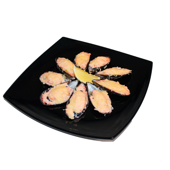 Мидии.запечёные под фирменным соусом с сыром Пармезан