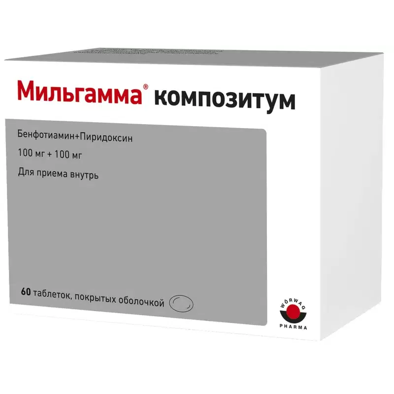 1 таблетка, покрытая оболочкой, содержит: активные вещества: бенфотиамин 100 мг, пиридоксина гидрохлорид 100 мг.