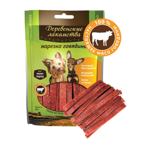 Деревенские Лакомства: нарезка говядины д/собак мини-пород, 55г