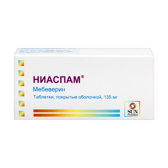 Что из себя представляет препарат Ниаспам® и для чего его применяютПрепарат Ниаспам® содержит действующее вещество мебеверин, относящееся к группе спазмолитических лекарственных средств.