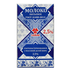 Тяжин Молоко 2,5% 1л 1/12 БЗМЖ