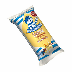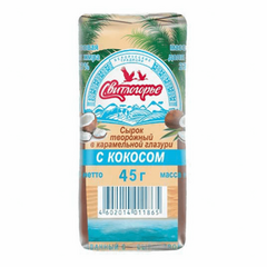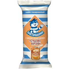 Творог (молоко цельное, молоко восстановленное из сухого молока, масло сливочное, закваска, молокосвертывающий ферментный препарат), сахар, глазурь кондитерская Карамельная (сахар, заменитель какао-масла лауринового типа (рафинированное, дезодорированное пальмоядровое масло, эмульгаторы...