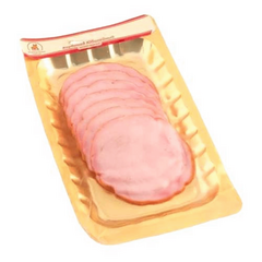 Свинина, вода, соль, экстракты пряностей (перец черный, розмарин), экстракты натуральных специй, декстроза, мальтодекстрин, животный белок, нитритно-посолочная смесь (соль, фиксатор окраски: нитрит натрия), стабилизатор (Е450, Е452), загуститель (каррагинан, Е427, ксантановая камедь), регулятор...