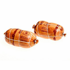 Свинина, вода, шпик, мясо птицы, говядина, нитритно-посолочная смесь (соль, фиксатор окраски: нитрит натрия), яичный порошок, животный белок, соевый белок, стабилизатор (Е450), регулятор кислотности (Е451, Е331, Е575), декстроза, соль, усилитель вкуса и аромата (Е621), антиокислитель (Е300,...