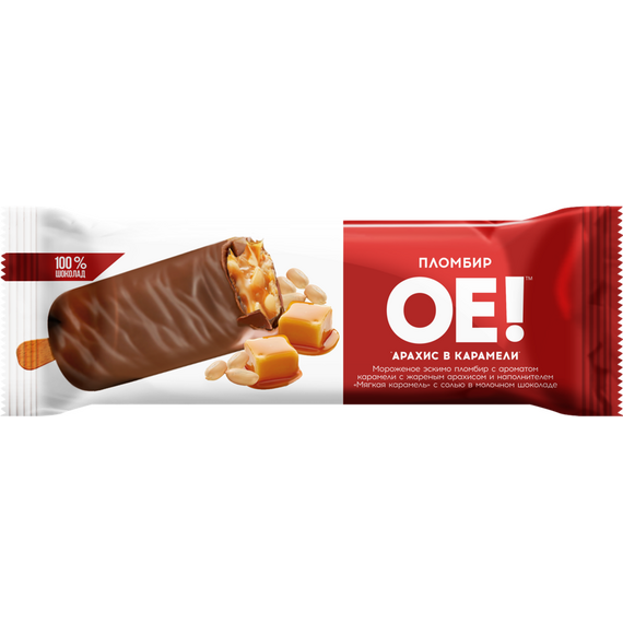 ОЕ Эскимо пломбир с карамелью и жареным арахисом в шоколаде 70г 1/20 /267, 201