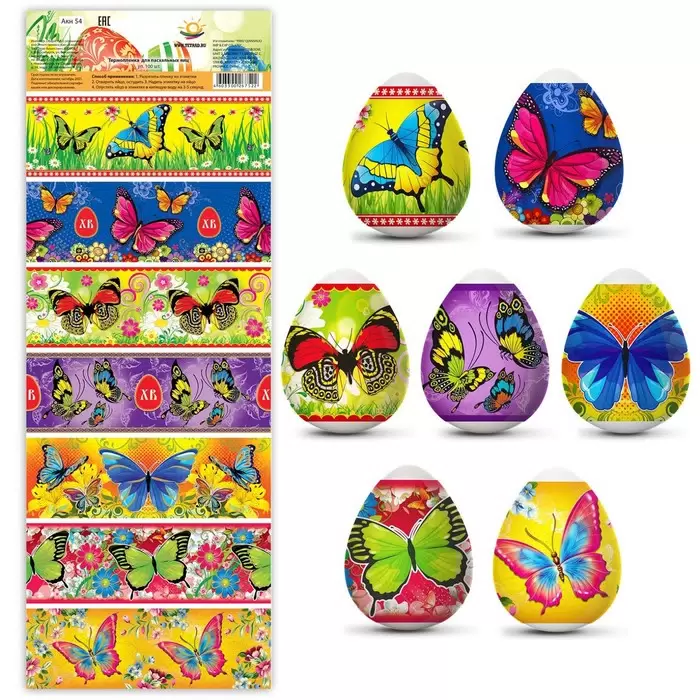 Пасхальная декоративная термоусадочная пленка 7фрагм. "Бабочки" 8бл 1/50 (В96919)