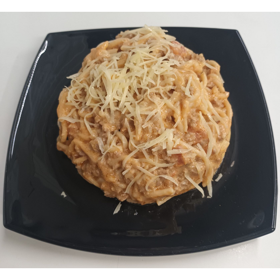Фарш говяжий,помидоры,кетчуп "Хайнц",сливки,сыр "Пармезан",спагетти
