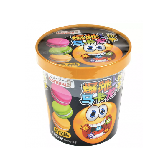 Откройте для себя уникальное сочетание классических французских макарон и современных гастрономических тенденций с печеньем Gangfu. Нежные макароны с насыщенным вкусом клубничного крема и неожиданным эффектом взрывной карамели подарят вам незабываемые моменты наслаждения.