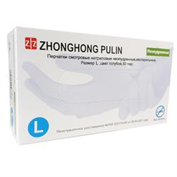 ПЕРЧАТКИ ЖОНХОН НИТРИЛ нест/неоп (пара) L (голуб) №50