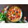 Пицца на толстом тесте с ветчиной, сыром моцарелла, кукурузой, маринованными огурчиками, болгарским перцем.