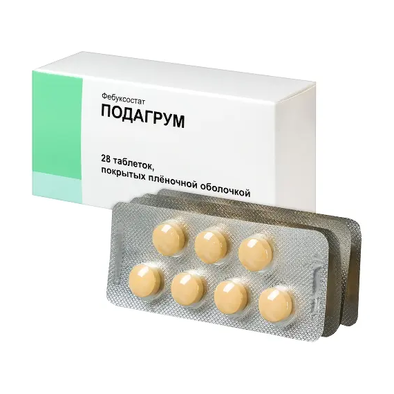 Внутрь, один раз в сутки, независимо от приема пищи.ПодаграРекомендованная начальная доза препарата ПОДАГРУМ составляет 80 мг один раз в сутки внутрь независимо от приема пищи. В случае, если концентрация мочевой кислоты в плазме крови превышает 6 мг/дл (357 мкмоль/л) через 2-4 недели, доза препарата может быть увеличена до 120 мг 1 раз в сутки. Снижение концентрации мочевой кислоты в плазме крови на фоне применения препарата ПОДАГРУМ происходит достаточно быстро, в связи с чем контроль концентрации мочевой кислоты можно проводить через две недели от начала приема препарата. Целью лечения является снижение и поддержание концентрации мочевой кислоты в плазме крови менее 6 мг/дл (357 мкмоль/л).Профилактика развития острых приступов подагры рекомендуется в течение не менее 6 месяцев.Синдром распада опухолиРекомендованная доза составляет 120 мг фебуксостата один раз в сутки независимо от приема пищи. Препарат ПОДАГРУМ следует начинать принимать за два дня до начала цитотоксической химиотерапии. Длительность применения препарата ПОДАГРУМ должна составлять не менее 7 дней. Однако продолжительность терапии может быть увеличена до 9 дней в зависимости от длительности курса химиотерапии и клинической оценки.Пожилые пациентыКоррекции дозы препарата не требуется.Пациенты с печеночной недостаточностьюИсследования эффективности и безопасности применения фебуксостата у пациентов с печеночной недостаточностью тяжелой степени тяжести (класс С по шкале Чайлд-Пью (10- 15 баллов)) не проводились, в связи с чем применение препарата у таких пациентов противопоказано.ПодаграУ пациентов с печеночной недостаточностью легкой степени тяжести (класс А по шкале Чайлд-Пью (5-6 баллов)) рекомендованная доза препарата составляет 80 мг 1 раз в сутки. Опыт применения препарата при печеночной недостаточности средней степени тяжести ограничен.Синдром распада опухолиПациентам, принимавшим участие в исследовании FLORENCE коррекции дозы фебуксостата в зависимости от функции печени не требовалось (в исследование не включались пациенты с печеночной недостаточностью тяжелой степени тяжести).Пациенты с почечной недостаточностьюУ пациентов с почечной недостаточностью легкой и средней степени тяжести коррекции дозы не требуется. У пациентов с почечной недостаточностью тяжелой степени тяжести (клиренс креатинина < 30 мл/мин) эффективность и безопасность препарата изучены недостаточно, в связи с чем применение препарата у таких пациентов противопоказано.