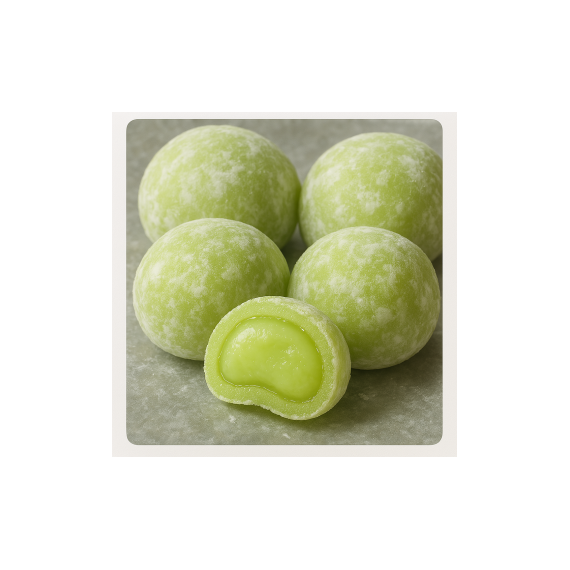 Моти с дыней — это нежнейшее рисовое пирожное с тонким ароматом сочной японской дыни. Эластичное тесто из клейкого риса обволакивает мягкую, насыщенную начинку, создавая уникальную текстуру и вкус. Один укус — и ты словно переносишься в тёплое лето в самом сердце Японии.