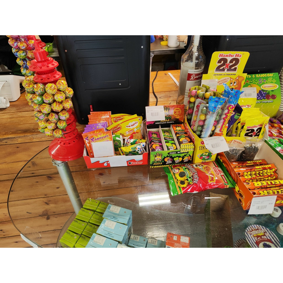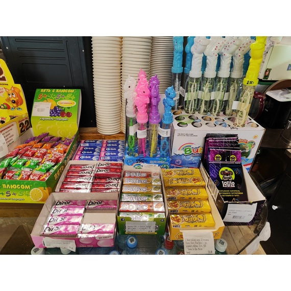 Шоколад, Напитки, Чипсы, семечки, жвачки, мыльные пузыри, соки 0.2л и т.д.