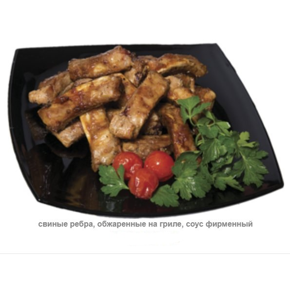 Свиные ребра, обжаренные на гриле, соус фирменный. Вес 390 гр.