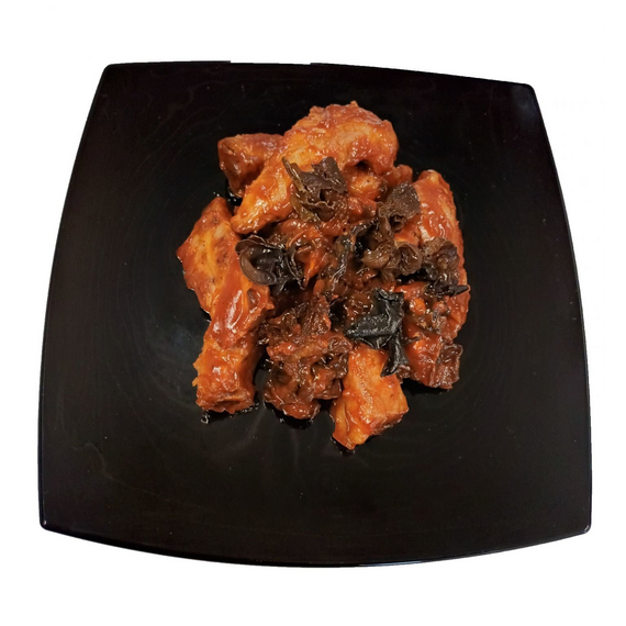 Рёбра свиные,грибы древесные,соус кислосладкий