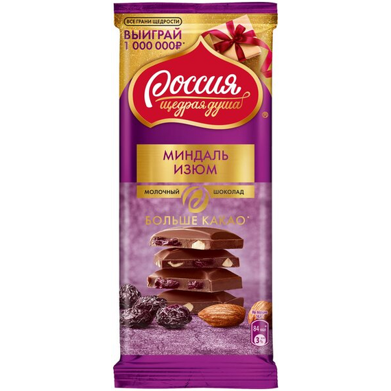 Российский 82г молочный шоколад Миндаль/Изюм 1/21