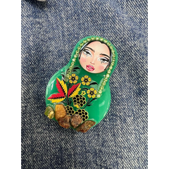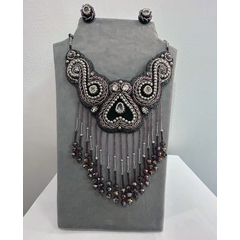Эпоксидная смола, стразовая и металлическая цепи. Застежка-булавка.