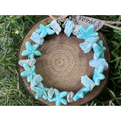 Браслет на Мемори проволоке. Амазонит, морские звезды-керамика.  Амазонит — это камень, который традиционно считается талисманом, приносящим семейное счастье, гармонию и умиротворение, а также защищающим от негативной энергии и способствующим спокойствию. Он символизирует истину, красоту и...
