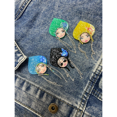 Эпоксидная смола, стразовая лента, камень-янтарь. Крепление-булавка.