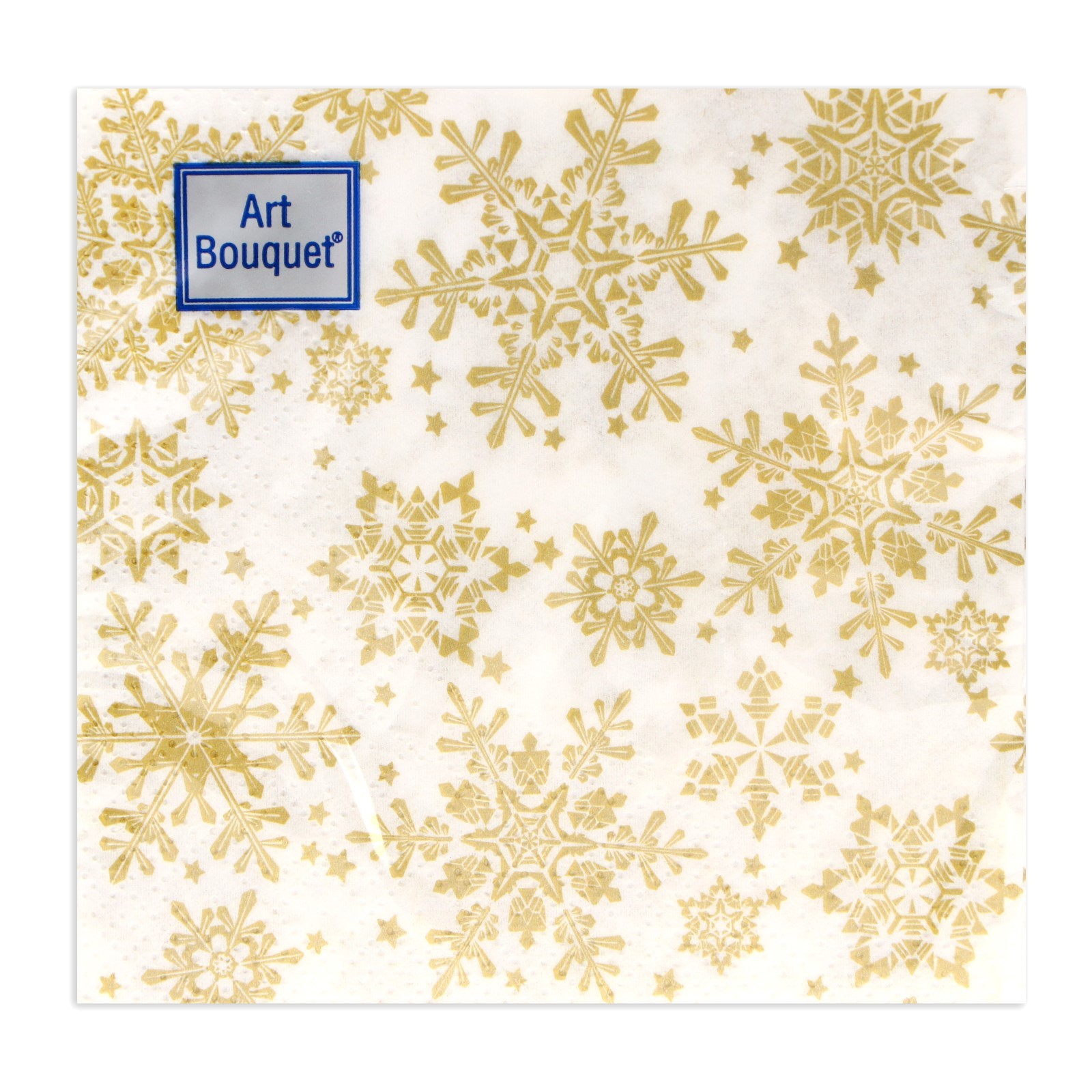 Салфетки бумажные Art Bouquet 30шт 20х20см 2 слоя , Золотые снежинки